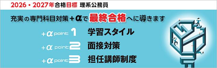 国家総合職、国家一般職、国家専門職、地方上級(都道府県庁・政令指定都市)、市役所、国立大学法人など幅広く対応しています。土木職、建築職、機械職、電気情報職、化学職、農学職は専門科目まで万全の対策ができます。