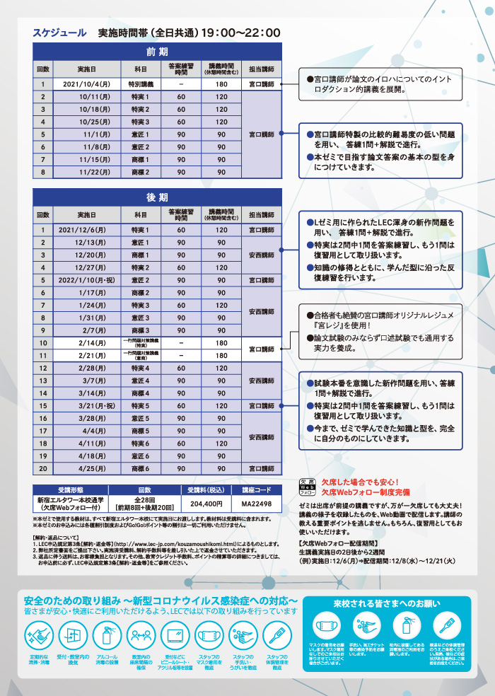 | LゼミSpecial(後期) | 通学+WEBフォロー | 全26回 | 260,000円 | MA26494 |