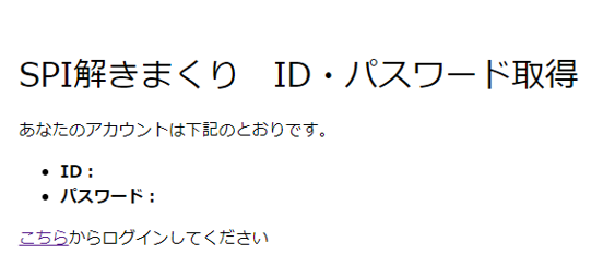 - 「SPI解きまくり ID・パスワード取得」をクリックし、ID・パスワードを発行