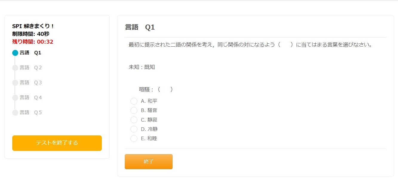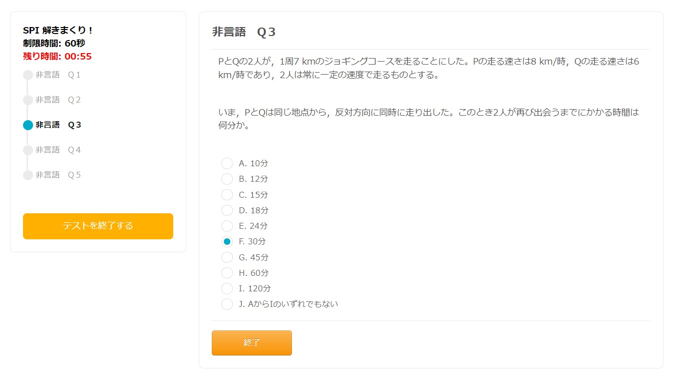 - ※1問ごとに解答時間が設定されております。回答時間が過ぎると前の問題に戻ることはできません。