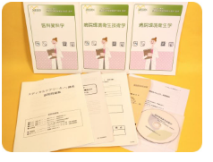 テキスト3冊/受講の手引き1冊/添削問題集5回/修了テスト1回/DVD1枚/質問用紙5枚/返信用封筒10枚