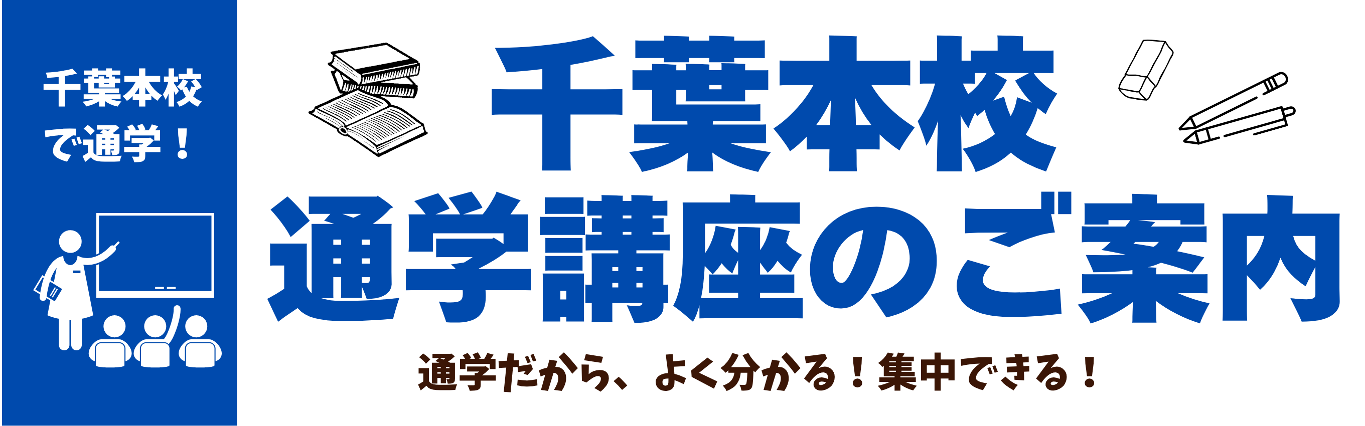 千葉本校で実施の通学講座の一覧です。通学講義や通学での問題演習、講師による説明会をご利用ご希望の方は、まずこちらをご確認下さい。