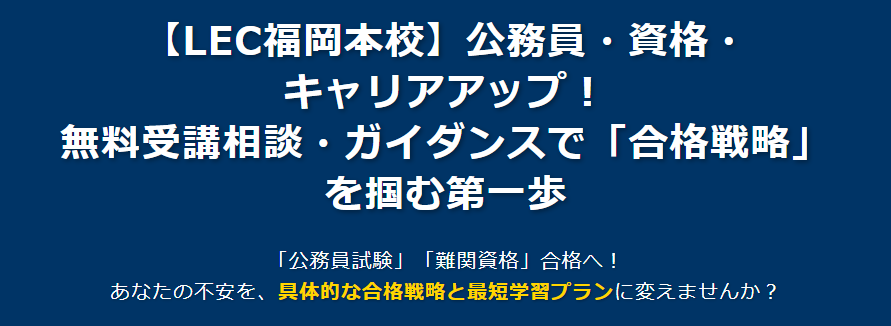 2025年10月〜12月に実施の公開模試の一覧です。 模擬試験は事前のお申込が必要です。 模擬試験の当日が悪天候の場合であっても、 福岡本校HPのトップページに休講のお知らせが無い限り、実施いたします。 当日の交通事情等による遅刻であっても、試験時間の延長等は致しません。 Caption 2025年10月〜12月 LEC福岡本校模試スケジ...