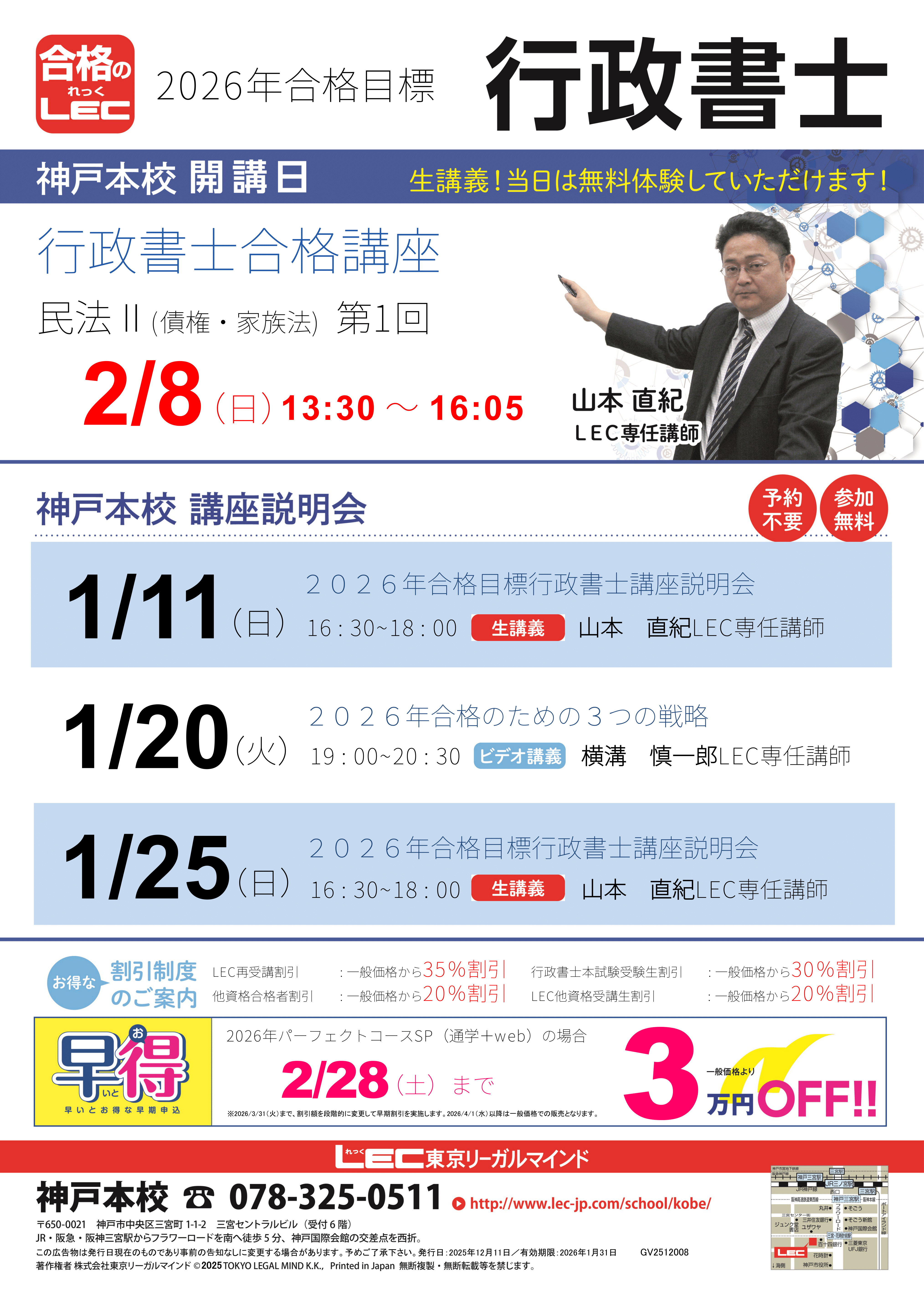 神戸本校では生クラスを 山本 直紀 LEC専任講師が担当いたします。