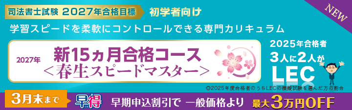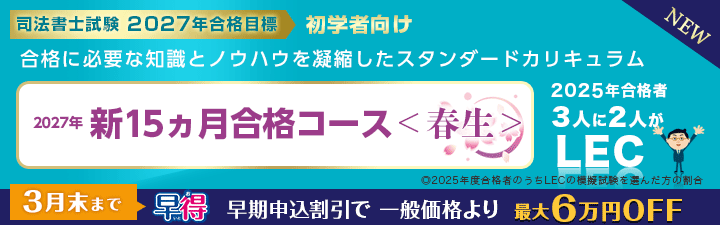 インプット+アウトプット一括 10万円割引 対象者: 過去にLECで司法書士初級講座をご受講の方※ |