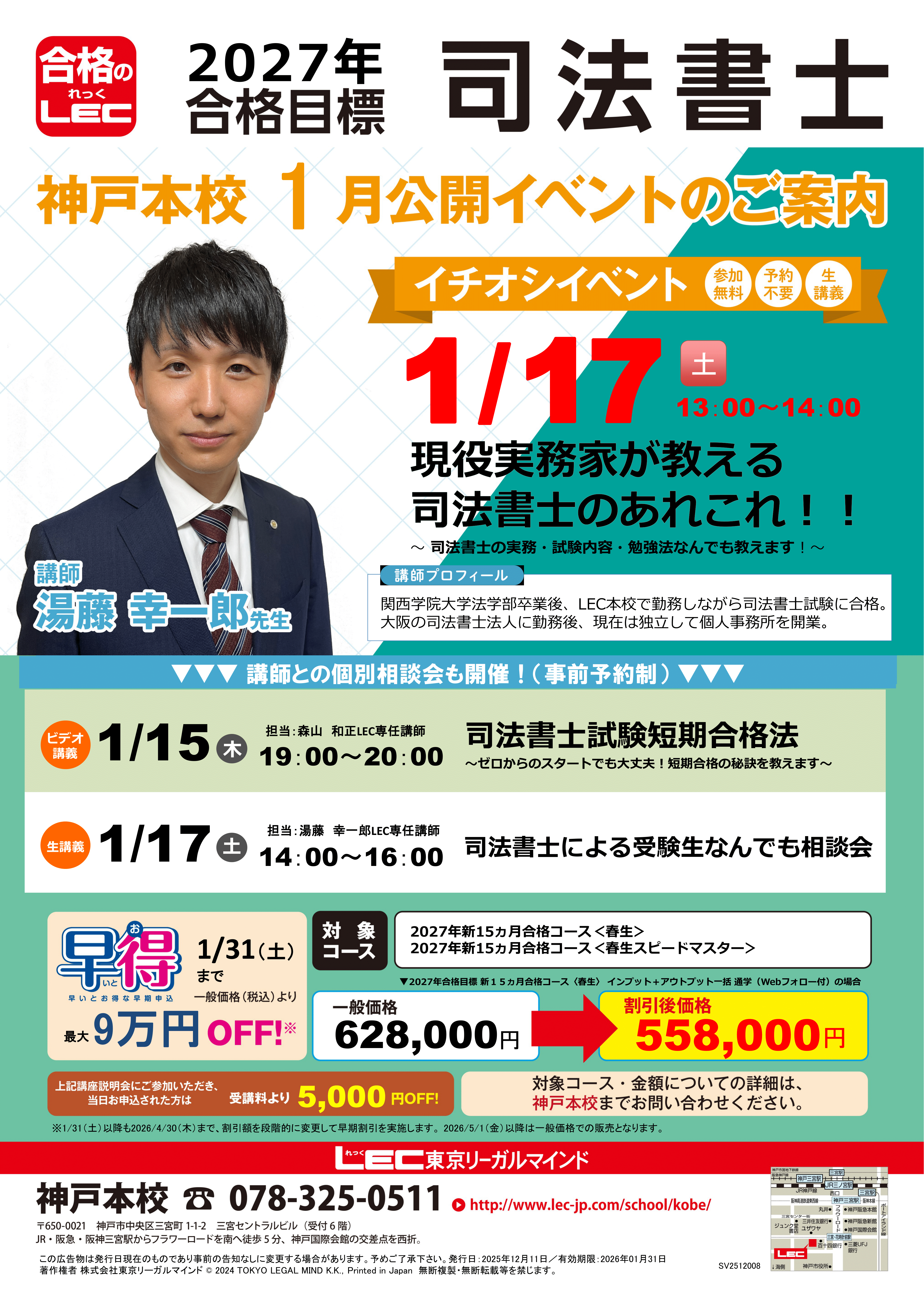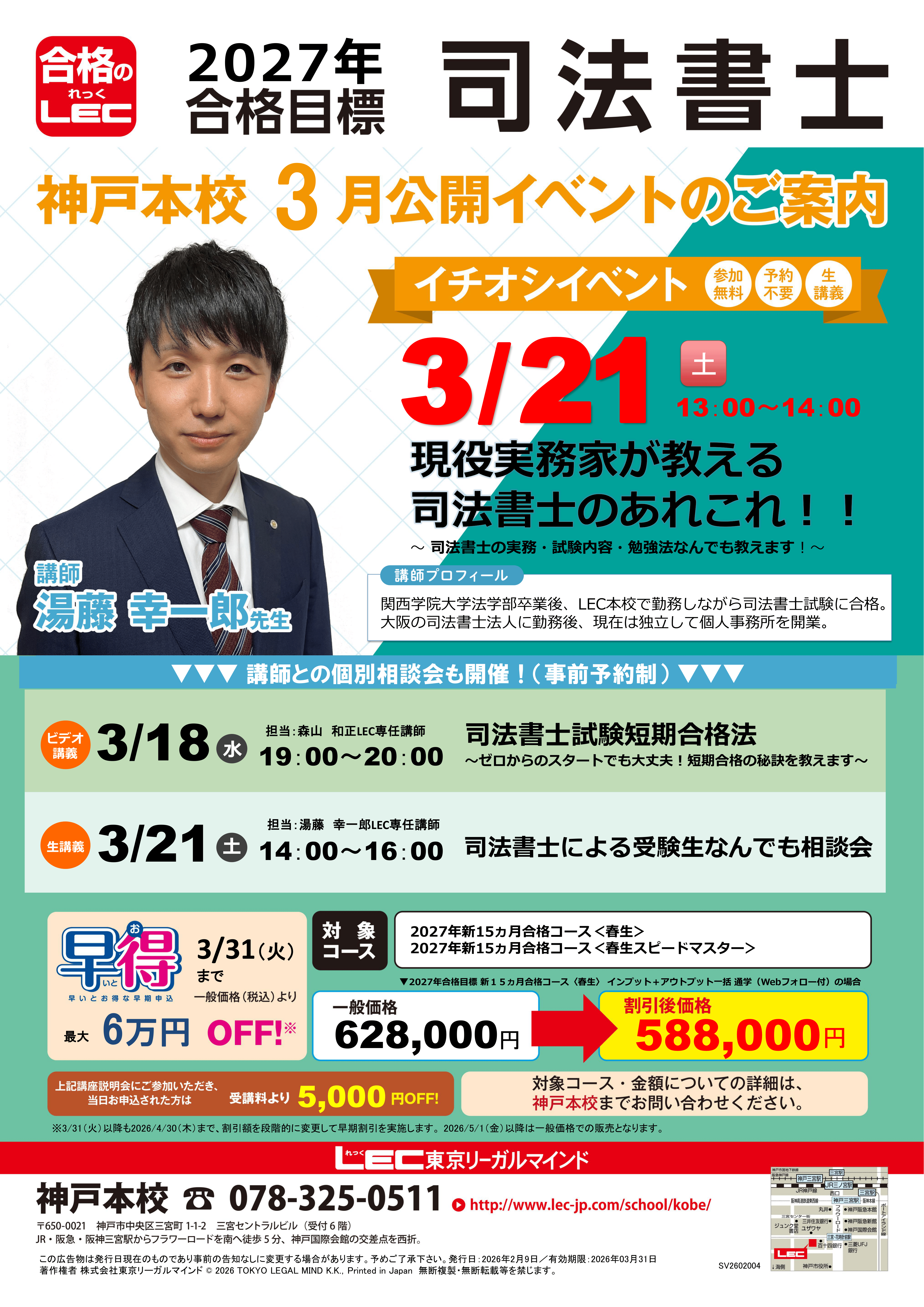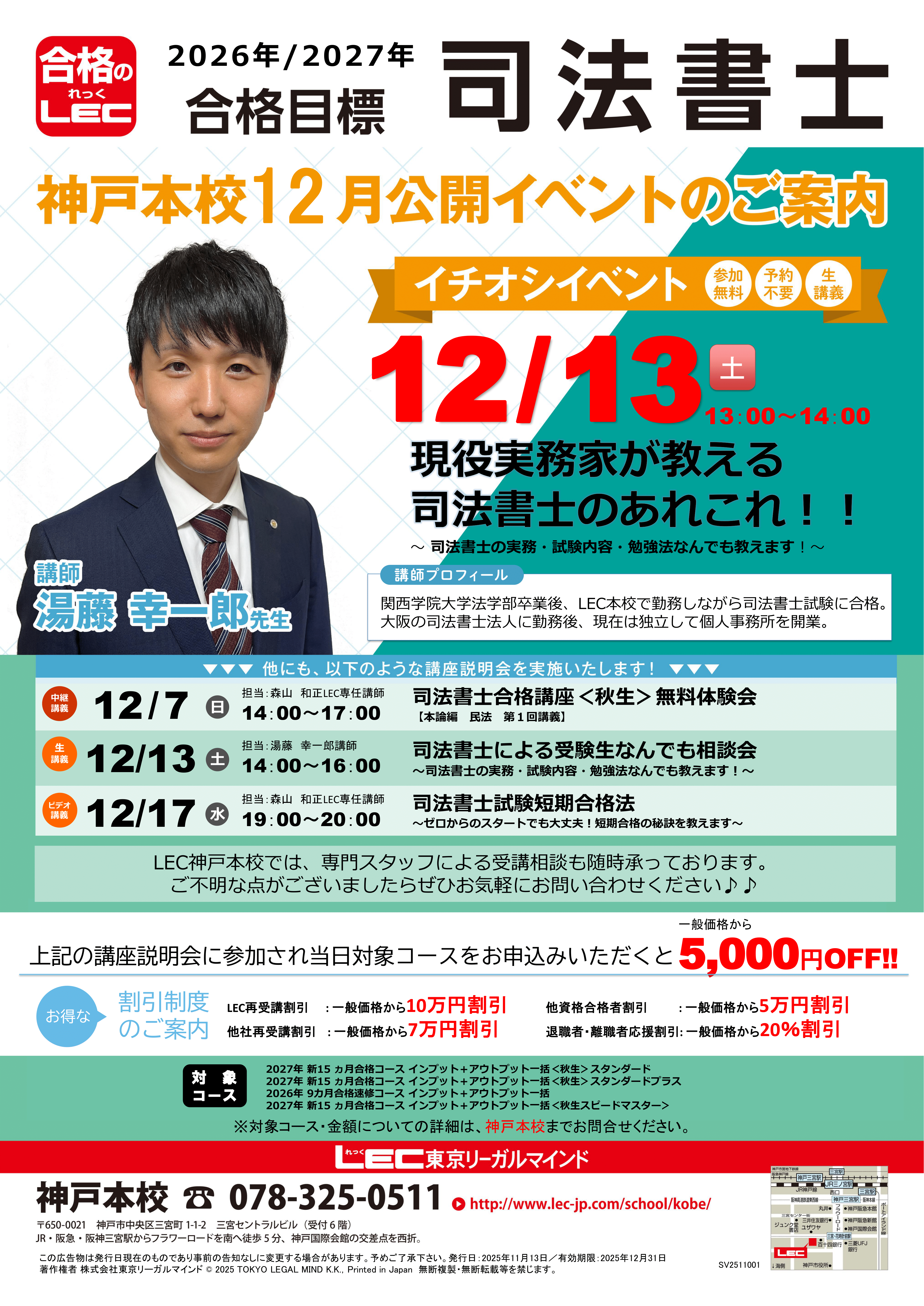 ★LEC講座のお申込は各種割引制度がご利用いただける神戸本校窓口がお得です★