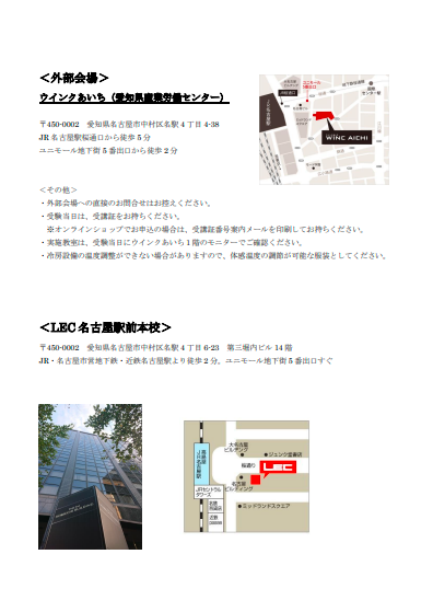 ※実施教室は、当日ウインクあいち1階のモニターにて確認ください。