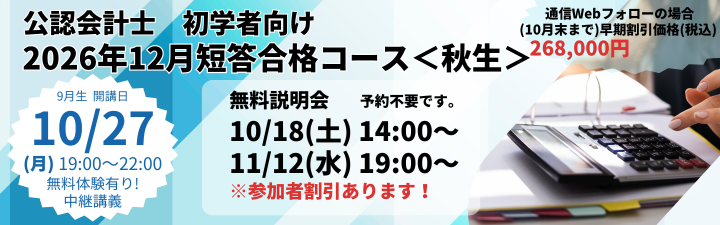 【公認会計士】学習経験者 2025年12月短答/2026年論文試験を目指す!