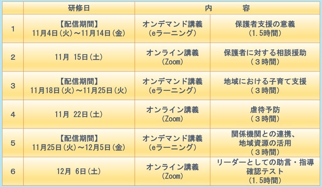 宮古島市内の公立・法人保育所、認定こども園、小規模保育事業、家庭的保育事業、事業所内保育事業、認可外保育施設等に勤務(常勤、非常勤問わず)している方で「保護者支援・子育て支援分野」に関してリーダー的な役割を担っている方及び担うことが見込まれる方並びに乳児保育に関する知識・スキルを身に付けたい方。お持ちのスマートフォン・タブレット・パソコン等でインターネット経由での受講が可能な方が対象となっております。(インターネット通信費は自己負担となります)