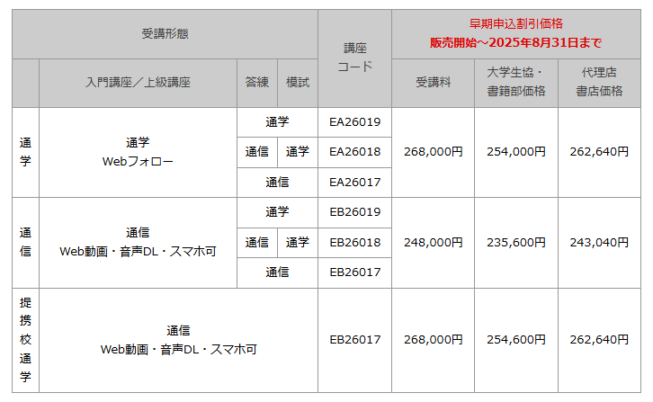 2026年「短答合格コース〈秋生〉」のWEB配信は2025年8月下旬からスタートします。
