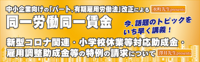 - ・新型コロナ関連・小学校休業等対応助成金・雇用調整助成金等の特例の請求について(特定社会保険労務士 澤井清治先生)